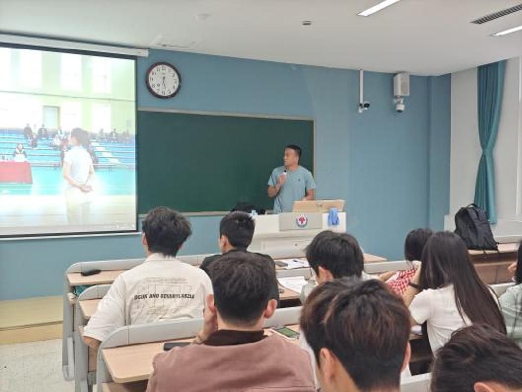 视频观摩结束后,同学们以小组为单位展开热烈讨论,每组选派1名代表进行分享汇报。张连磊老师从教学设计、课堂把控、德育渗透三个层面进行专业点评。他特别强调:“优秀的体育教师要善于将专业技能转化为员工可接受的学习内容”。在互动环节,同学们积极提问,张老师一一耐心解答,现场气氛热烈。