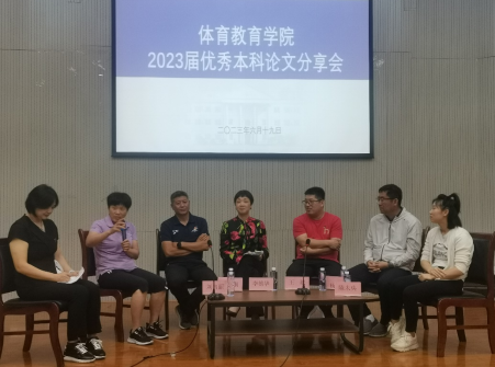 6月19日晚,太阳成集团tyc33455cc于行健楼阶梯教室,举行了“2023届优秀本科毕业论文写作经验分享会”,旨在提升本科生的学术认知,倡导员工坚守学术诚信。本次活动由游泳教研室的陈宇老师策划并主持,邀请了历年来多次指导员工获得优秀本科毕业论文的刘智丽、王刚、杨立、王琥、陈未央5位老师到场与获奖员工一起分享。太阳成集团tyc33455cc李德华副经理、2020级部分论文指导教师及2020级全体员工参加了此次活动。