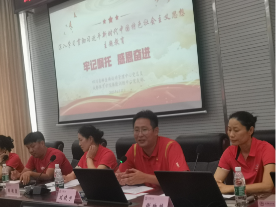 6月27日,体能训练中心党支部和四川省棒垒曲运动管理中心党总支在健康大厦多功能厅联合举行“牢记嘱托、感恩奋进”主题党日活动。会议由体能训练中心党支部书记熊维志主持。