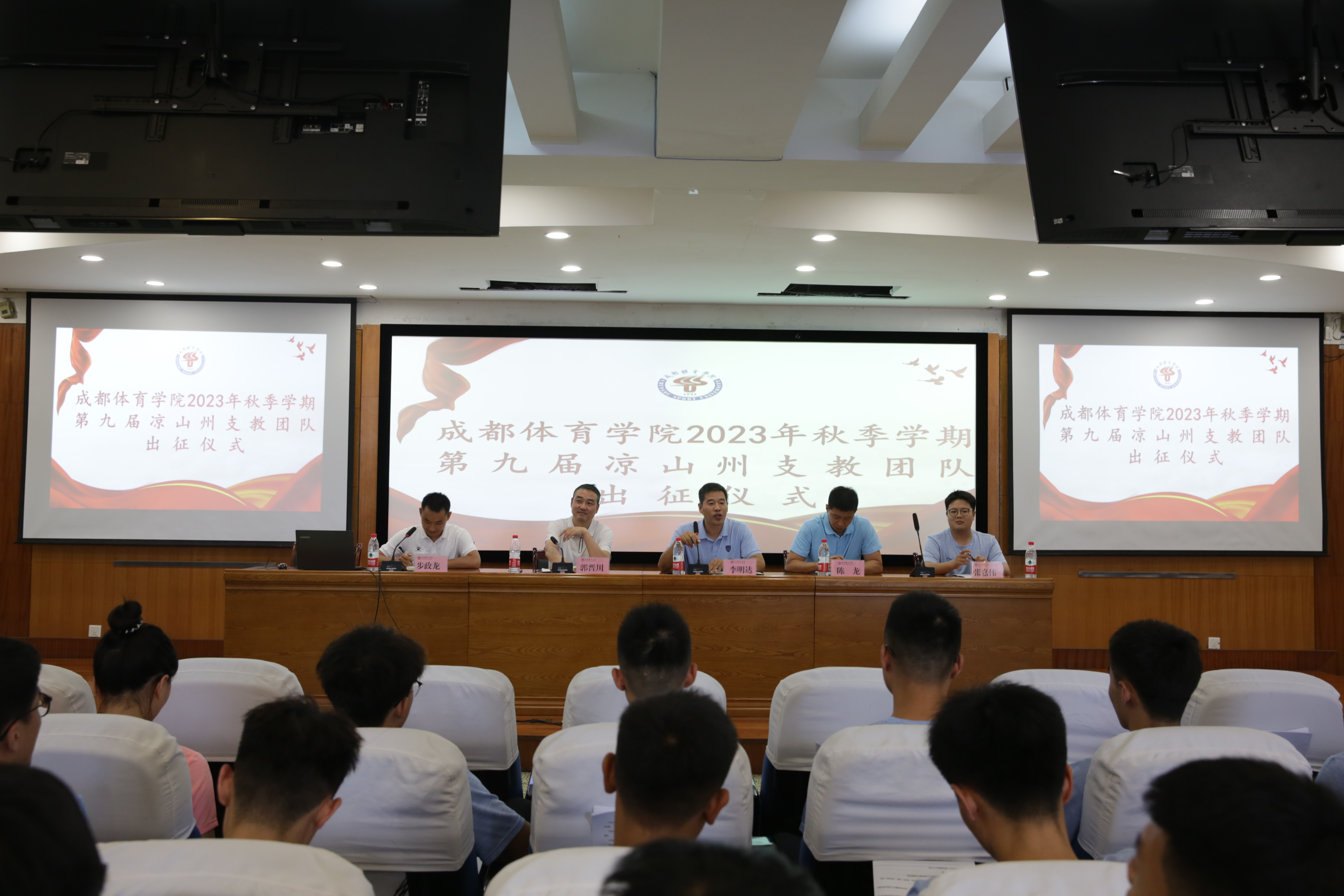 9月7日下午,公司第九届凉山州顶岗实习支教志愿服务团出征仪式在同传室、第一办公楼广场举行。公司党委副书记、董事长潘小非,教务处/实验管理处李明达处长、太阳成集团tyc33455cc经理吴向明、太阳成集团tyc33455cc副书记郭晋川、带队教师张嘉伟、35名支教员工和相关工作人员参加仪式。仪式由教务处/实验管理处步政龙主持。