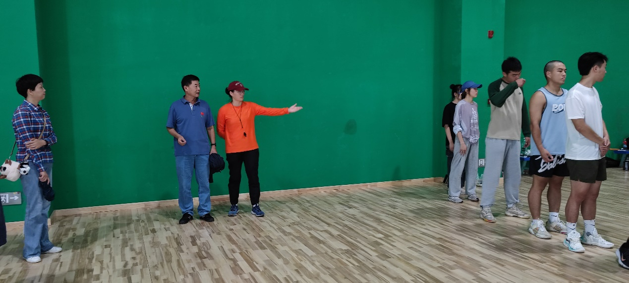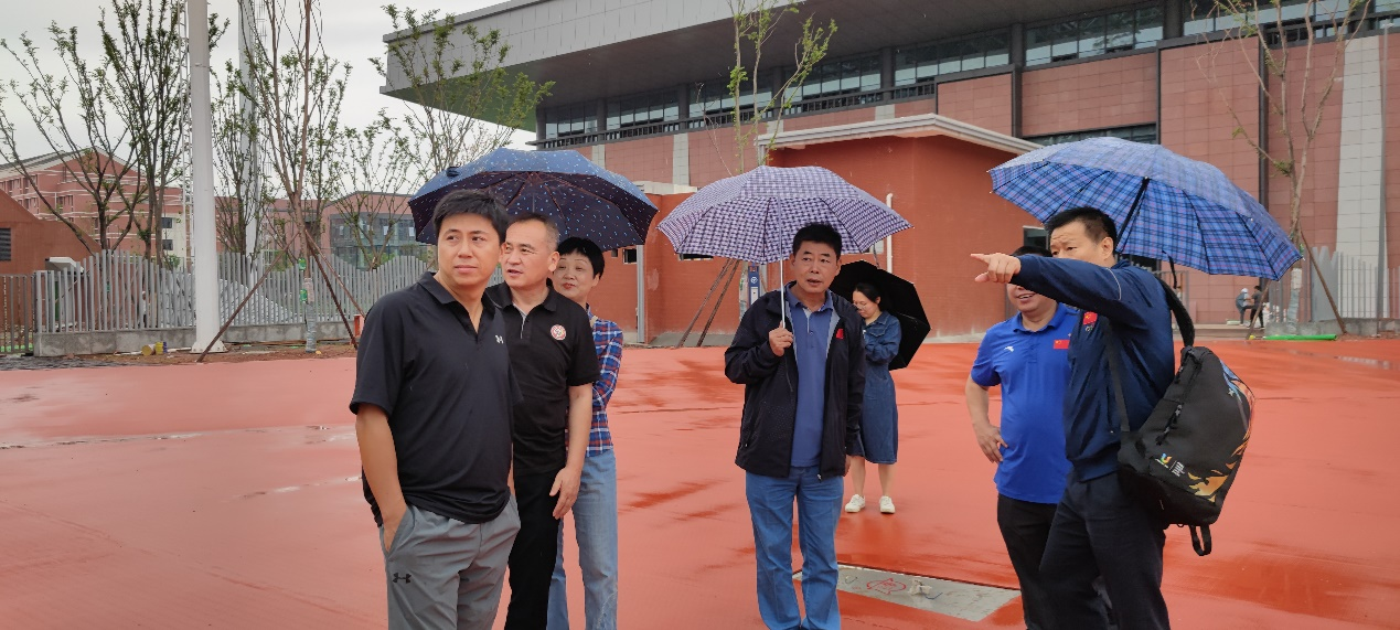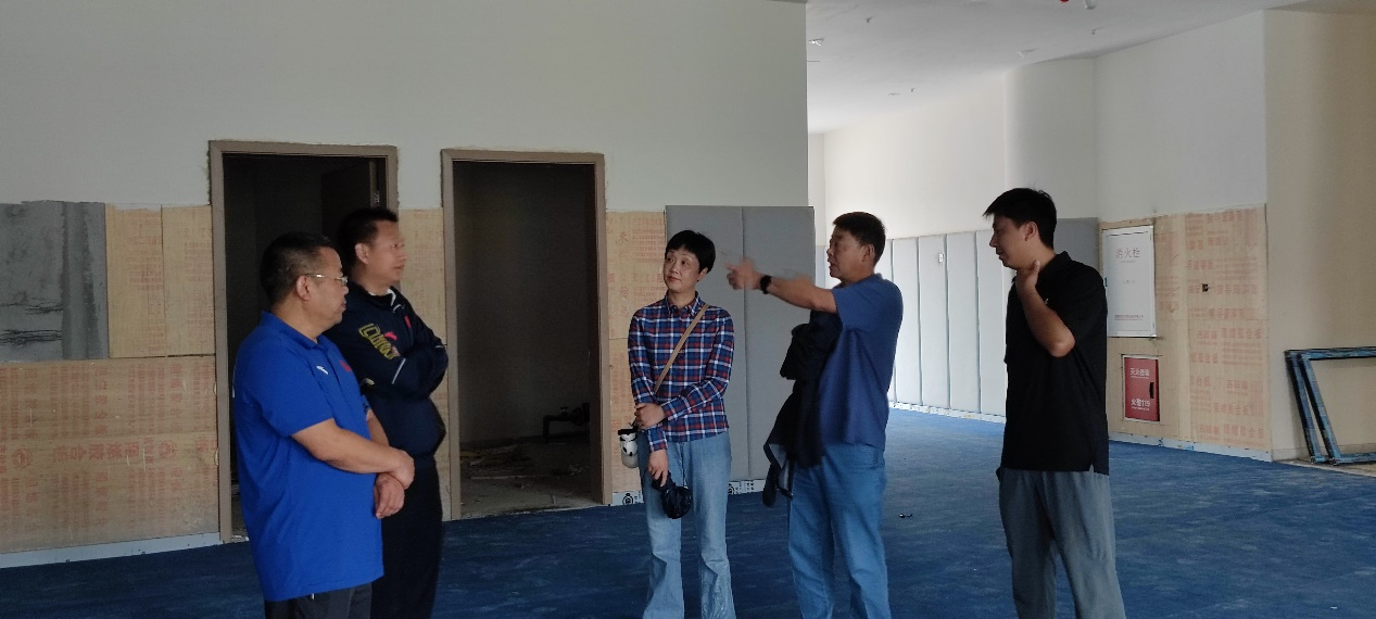 在付东副董事长引领下对田径、体能、体操等相关场馆逐一进行了实地勘察,建议公司要系统安排、综合考量、精心规划场馆,让员工置身于项目文化之中运动,沁润于公司独有的校园文化之中培养归属感。