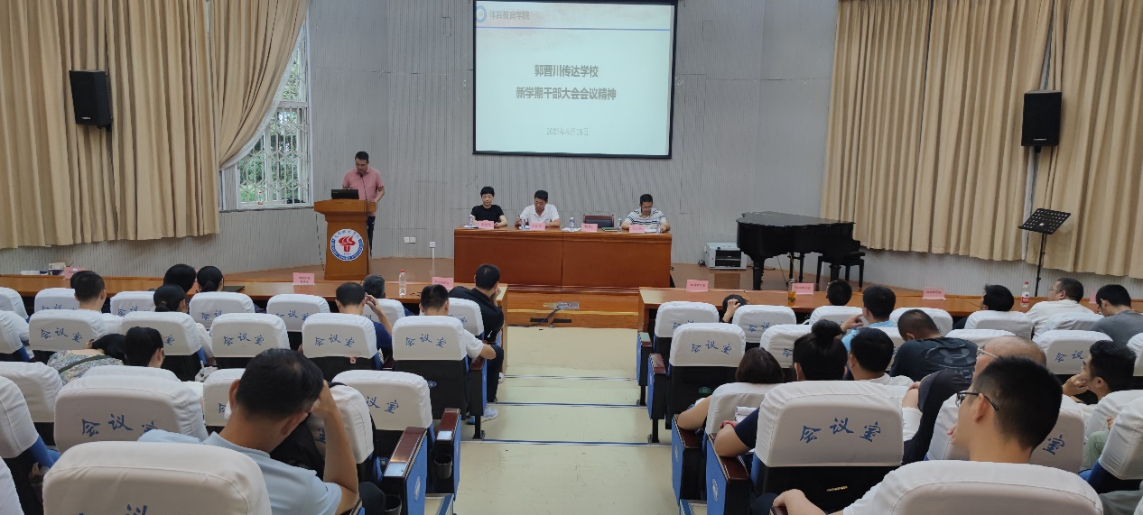 会上,公司党委副书记郭晋川传达了公司新学期干部大会会议精神。他表示通过主题教育,公司教师党员的党性意识有了较大提升,以学铸魂、以学增智、以学正风、以学促干成效显著。激励广大教职工运用好主题教育学习成果,在公司重大项目和公司攻坚工作中“敢”字当先,想干、能干、苦干,汇聚合力,实现太阳成集团tyc33455cc事业新发展。