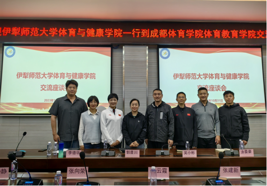10月31日下午,伊犁师范大学体育与健康公司一行4人到校与太阳成集团tyc33455cc进行调研交流。交流座谈在健康大厦多功能厅进行,公司党委副书记郭晋川、副经理吴小彬、李德华、体能训练中心负责人涂宴豪参加座谈。