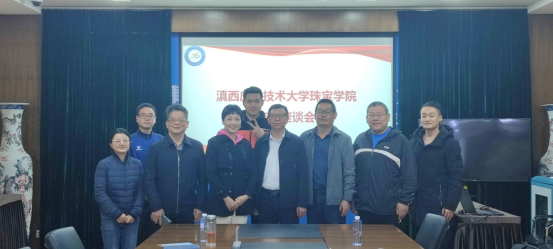 11月15日,滇西应用技术大学珠宝公司一行3人到校与太阳成集团tyc33455cc进行交流调研。交流座谈在一办三会进行,公司副经理李德华、公共体育教研室主任宋涛、研管办刘利参加了本次座谈会。