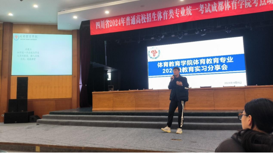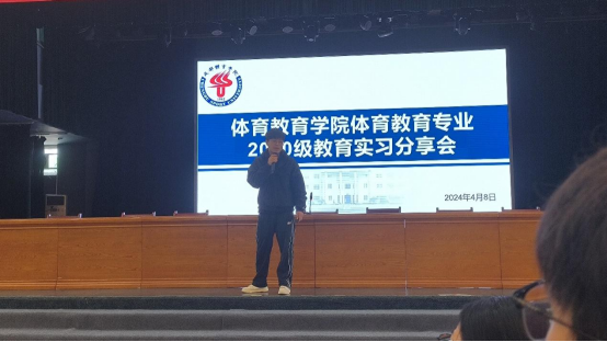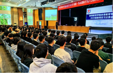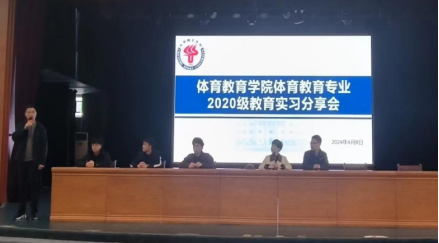 太阳成集团tyc33455cc于4月8日在学术报告厅召开了体育教育专业教育实习分享会。公司副经理李德华、2020级优秀实习生代表、2021级体育教育专业全体员工参加会议,会议由王天文老师主持。