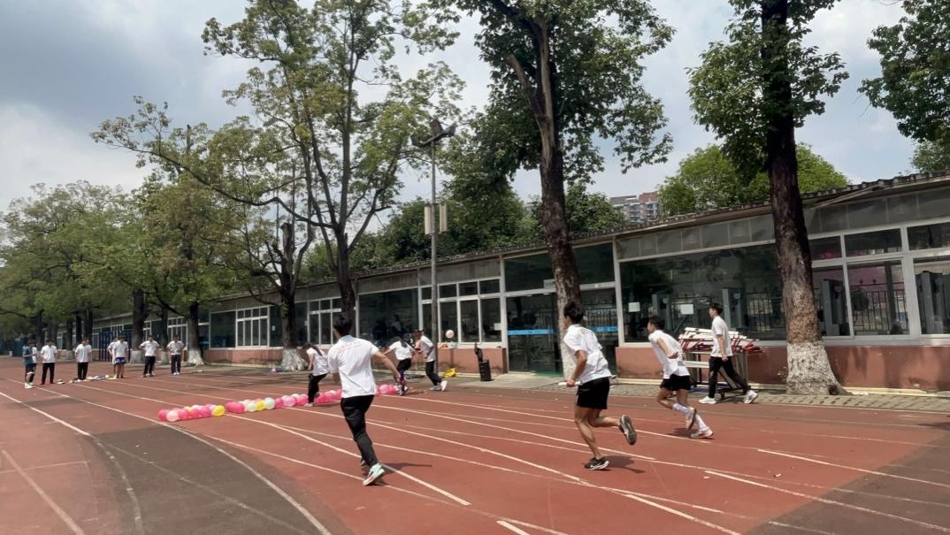 5月21日,2023级体教4班在田径场开展班级凝聚力活动。