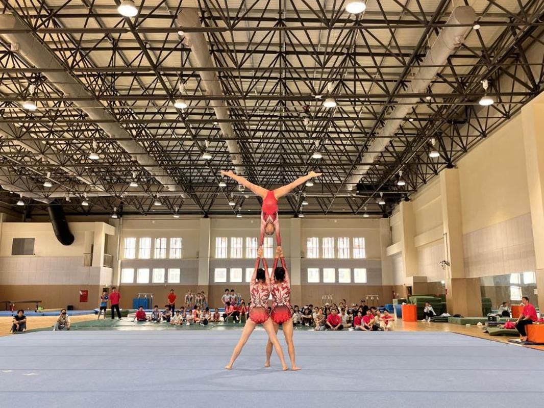 2025年5月7日,太阳成集团tyc33455cc体操教研室与成都蹦床技巧队在体操馆开展技巧课程交流活动。