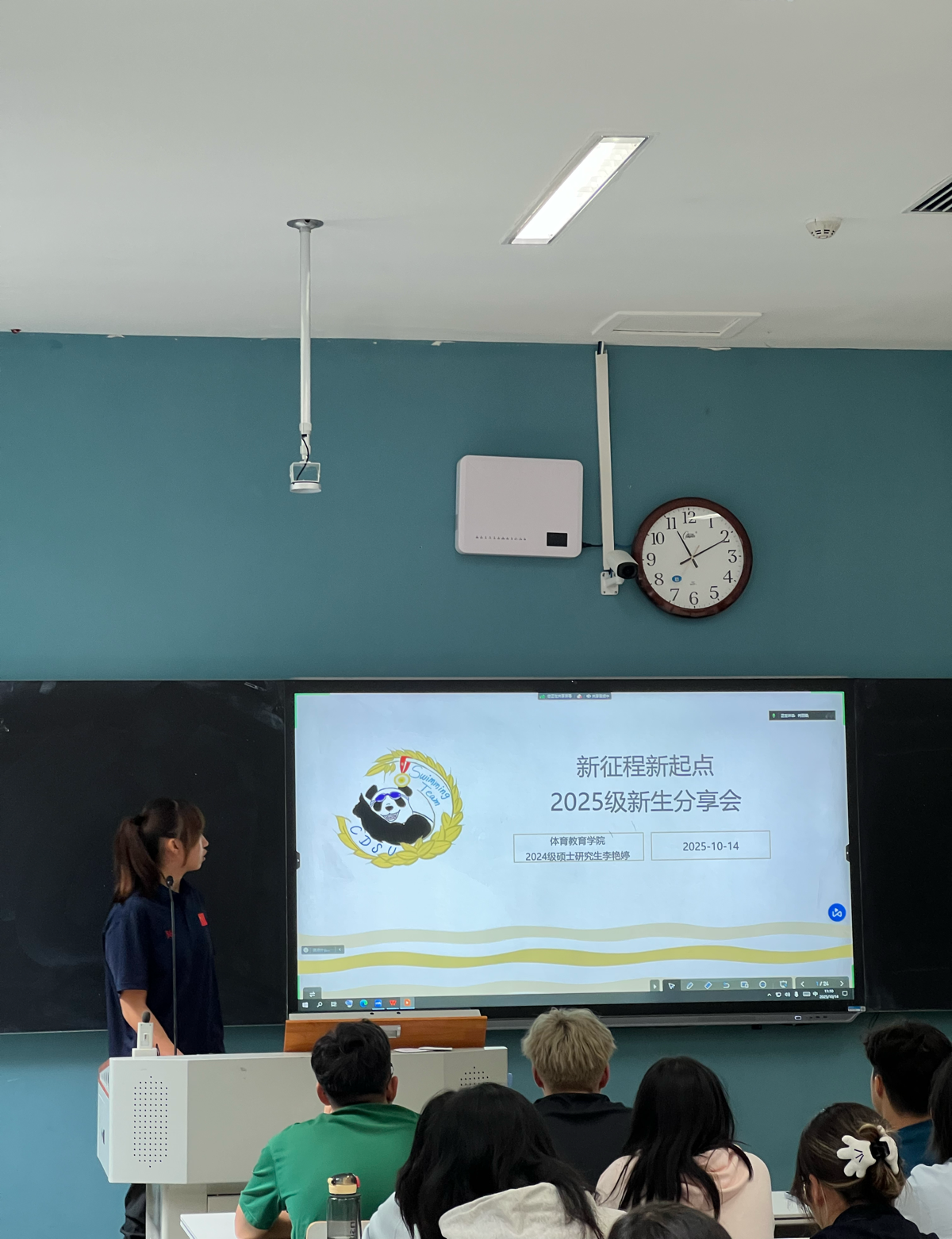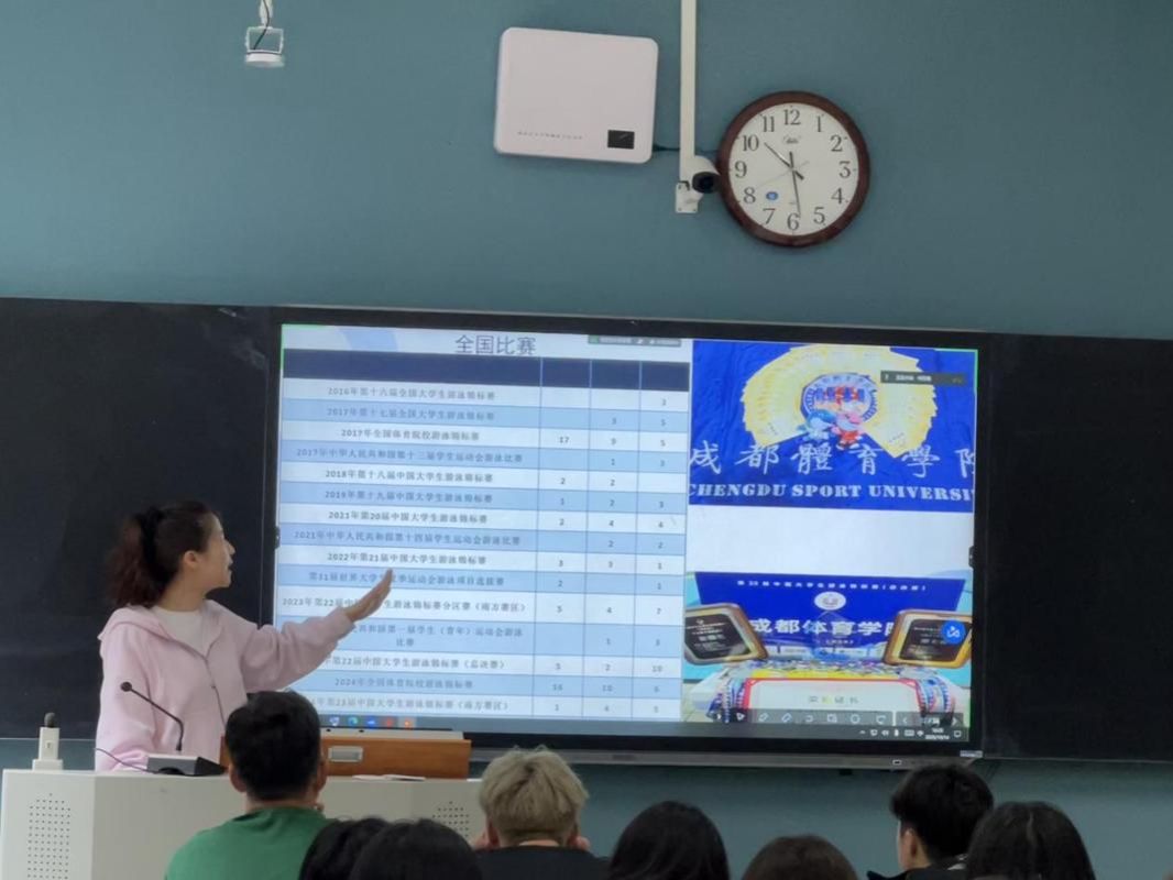 宣讲会上,游泳代表队主教练肖丽娜老师首先向新生介绍代表队历史与成就,详细说明了日常训练安排、招新要求,以及推免研究生和奖学金政策等内容,鼓励新生积极参与学科竞赛和社会实践,全面提升自我。